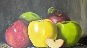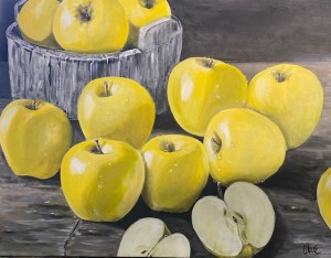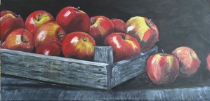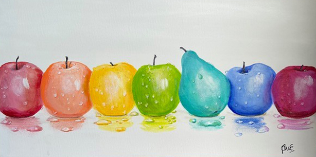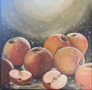 Hi, I’m Anne. I’m a full time artist and a part time floral designer. I was born in Shropshire, England and moved to Canada with my family as a girl. (The Leafs haven’t won the cup since I arrived, but please don’t blame me!) I’ve been painting for as long as I can remember; my current medium of choice is acrylic with which I enjoy painting the beautiful Meaford scenery, still life, especially apples, along with other subject matter such as birds, animals and sea creatures. I’ve been known to add some funky colours and whimsy to my art. Whatever I’m painting, my goal is to bring a sense of peace and happiness to the viewer.