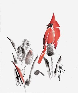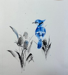 Based in Annan, Ontario, Emily Bi of Ginkgo Footprints is a permanent member of the Owen Sound Artists’ Co-op. With expressive brushstrokes, she aims to capture the beauty of nature via the mediums of ink on rick paper or silk, and acrylic on canvas. An avid gardener and collector of peony varieties, these along with plant species native to Grey Bruce, birds, and local landscapes are among her favourite painting subjects.