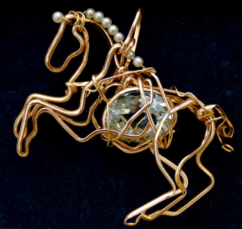 I enjoy sculpture as a rewarding medium of expression. Clay and wire horse sculpture or tiny sterling sculptures as wearable art are an alternative to acrylics and oil paintings.